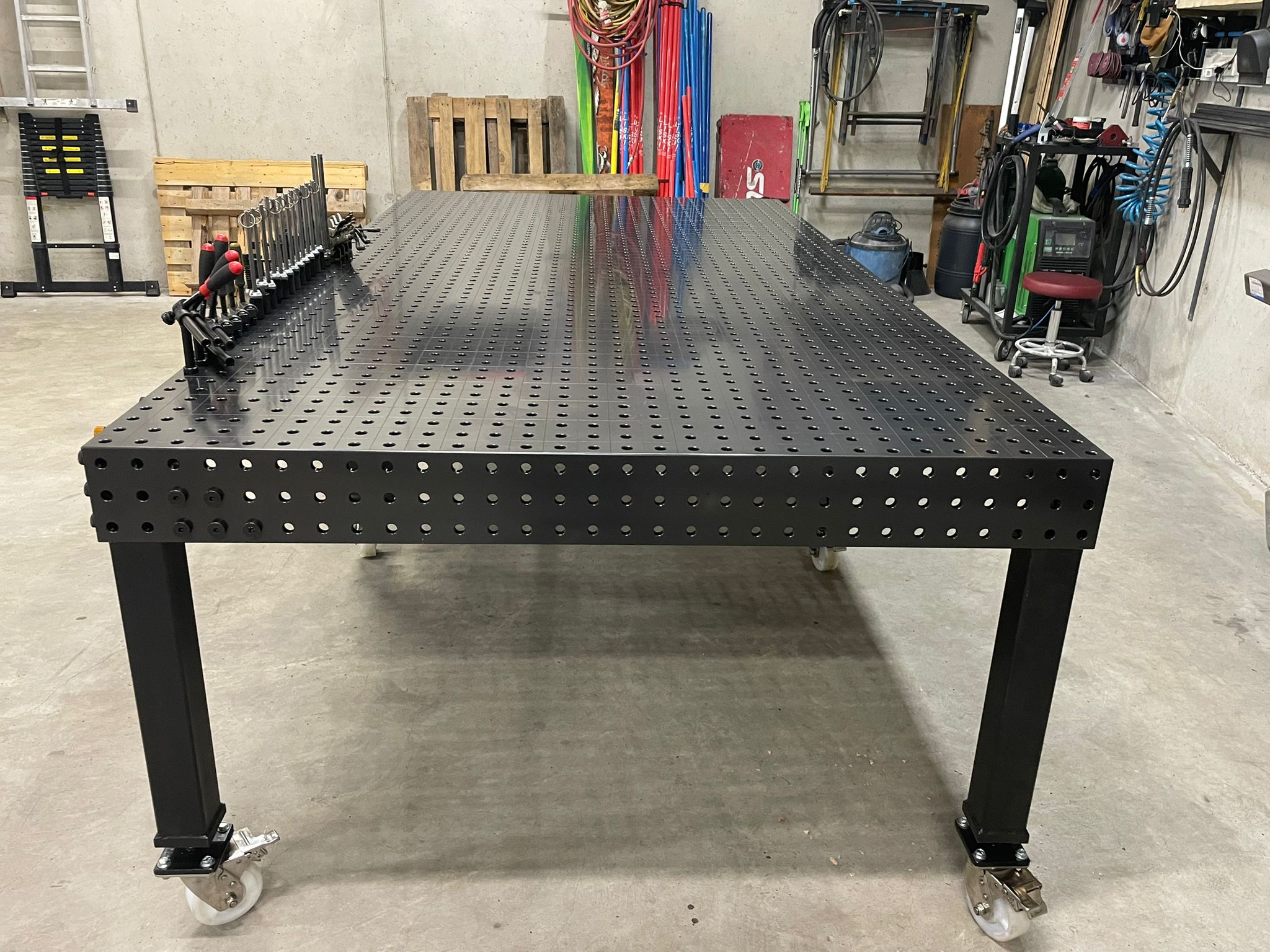 Puikus stabilumas: sutirštinto plieno plokštės stalviršis su azotine danga, apsaugančia nuo suvirinimo šlako, gali atlaikyti 500–1000 kg apkrovą, užtikrinant, kad suvirinimo operacijos nekratytų ar nesislinktų, ir efektyviai pagerina suvirinimo tikslumą.