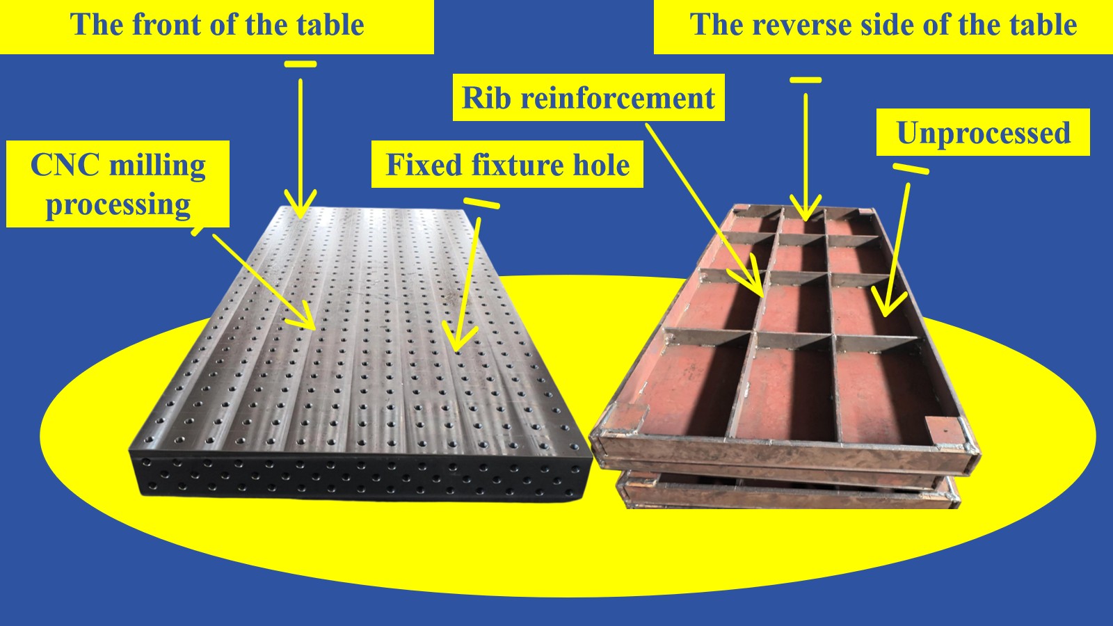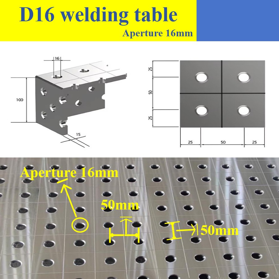 Daugiafunkcinis pritaikymas: stalviršyje yra išgręžtos padėties nustatymo skylės ir tvirtinimo padėtys, skirtos greitai pritvirtinti įvairius įrankių tvirtinimo elementus, suderinamus su įvairiais procesais, tokiais kaip rankinis lankinis suvirinimas, argono lankinis suvirinimas ir suvirinimas ekranuotu dujomis.